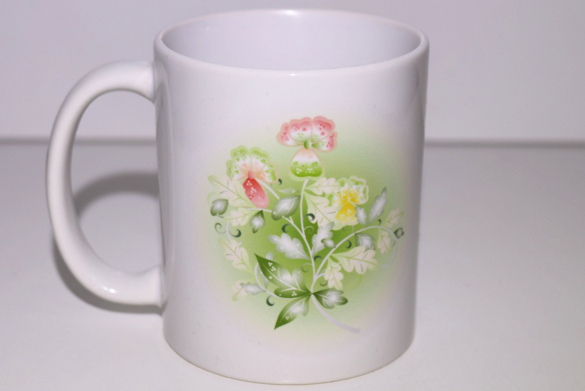 Hrníček s vlastním potiskem z projektu Abstraktní viola. Jedná se o sublimační tisk, který snese občasné mytí v myčce, doporučeno je mytí v ruce.